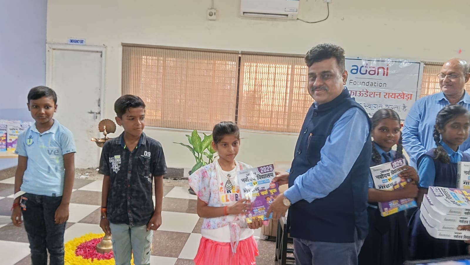 The chief guest in this distribution program organized at the plant premises of Adani Power Limited, Raikheda was Shri Shrikant Vaidya, Station Head, Adani Power Limited, Raipur. The children of Navodaya Coaching Center and their parents, Plant Safety Head Rajkumar Mandal, Human Resources Head Mr. Bhupendra Bais, CSR Head Deepak Singh, and members of the CSR team were present in the program. Chief Guest Mr. Shrikant Vaidya distributed practice books and other educational materials for Jawahar Navodaya Vidyalaya Entrance Examination to the students studying in Navodaya Coaching Centers.