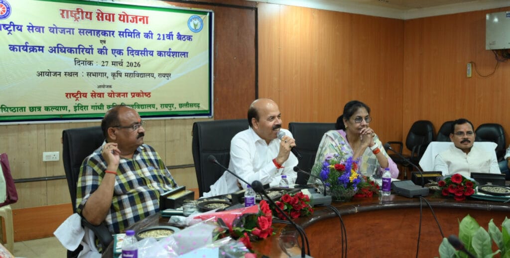 The 21st meeting of the National Service Scheme Advisory Committee of the Indira Gandhi Agricultural University was held today in the auditorium of the College of Agriculture, Raipur. Important topics such as social service, cleanliness, environmental protection, and youth empowerment were discussed extensively. Chaired by Vice Chancellor Dr. Girish Chandel, the meeting began with an inspiring message from Dean of Student Welfare, Dr. Sanjay Sharma, “You before yourself.” He emphasized the importance of making cleanliness an integral part of our lifestyle. Following this, Dr. Neeta Bajpai, State Coordinator of the National Service Scheme, highlighted the importance of blood donation, saying it is a vital means of saving lives in emergency situations, and public awareness is essential. Dr. Girish Chandel suggested conducting cleanliness as a public campaign on the university campus, emphasizing the active participation of students.