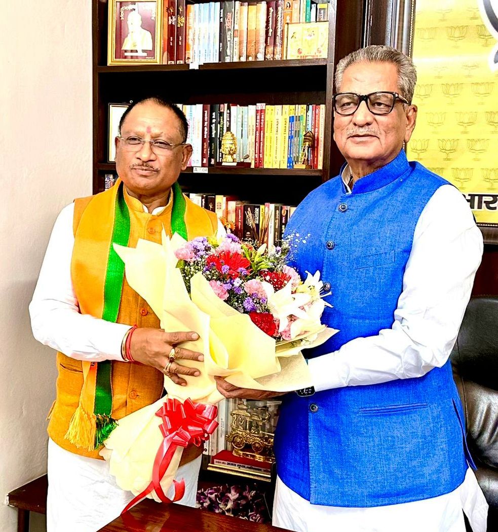 Chhattisgarh Chief Minister Vishnudev Sai today met the newly appointed Governor of Sikkim, Shri Om Prakash Mathur at his residence in New Delhi. On this occasion, Chief Minister Shri Sai congratulated Shri Mathur on his appointment as Governor and wished him success Wished for tenure.