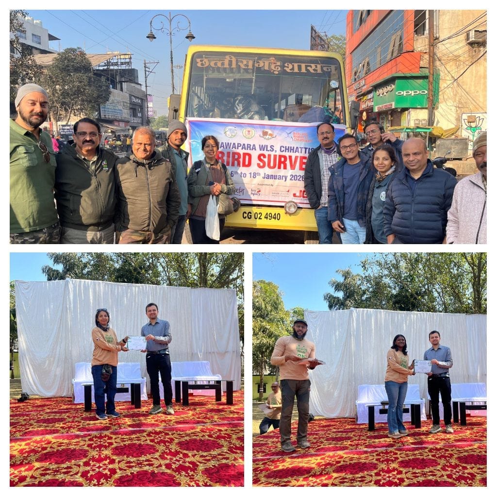 The “Bird Survey 2026” was successfully concluded at the Barnawapara Wildlife Sanctuary from January 16 to 18, 2026. Participants from 11 states across the country – Maharashtra, Odisha, West Bengal, Telangana, Gujarat, Madhya Pradesh, Uttar Pradesh, Bihar, Rajasthan, Kerala, and Karnataka – actively participated in the survey.