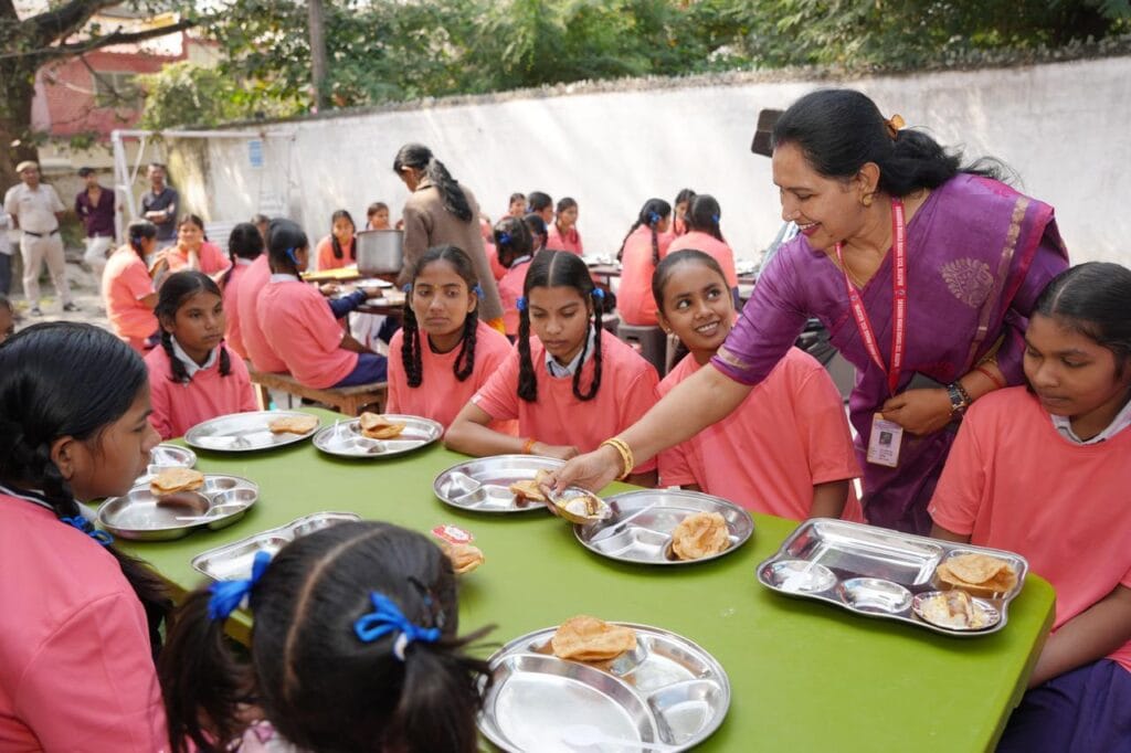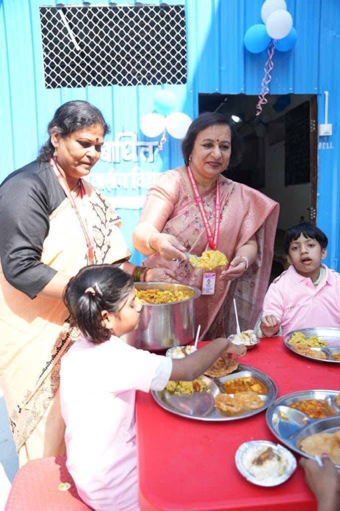 To support the girls in their daily routines, Shraddha Mahila Mandal gifted a fully automatic washing machine. Additionally, T-shirts were distributed to all 45 girls, and a delicious lunch was arranged, which the children enjoyed wholeheartedly.